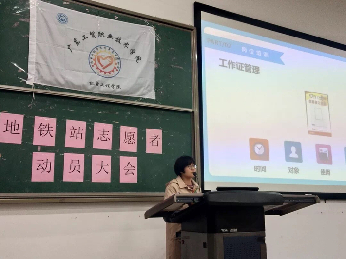 为应对28日开通的14号线新和站的志愿服务,2018年12月27日晚机电工程学院青年志愿者协会组织召开了地铁站志愿者动员大会。会长武晓翠老师对志愿者强调了工作态度、工作证的正确填写以及本次活动的注意事项等。副会长何向荣再次对志愿者的工作进行详细讲解,对无人售票机的使用,地铁候车区域秩序的指引,安全乘车须知,以及熟悉站内环境,场内设备的使用等方面进行了详细的讲解。