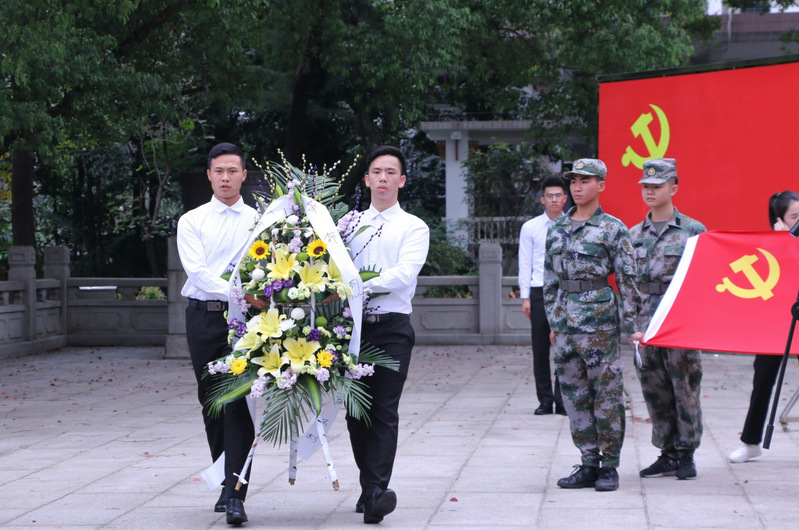 随后,全体党员及学生为广州起义革命烈士们献上花圈和纸花,为广州起义而牺牲的烈士们寄托我们深远的哀思,传递我们崇高的敬意。