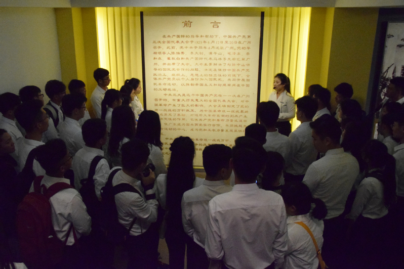 当天下午,我们的队伍前往中共三大会址纪念馆进行参观学习,全体党员和学生走进纪念馆,瞻仰历史陈列,通过聆听讲解、参观文物展示、文字图片介绍以及会场的实景复原,感受到了中共三大召开的复杂历史背景、重大历史意义和深远影响,学习了革命先辈的崇高精神,明确了肩负的重大责任和使命。