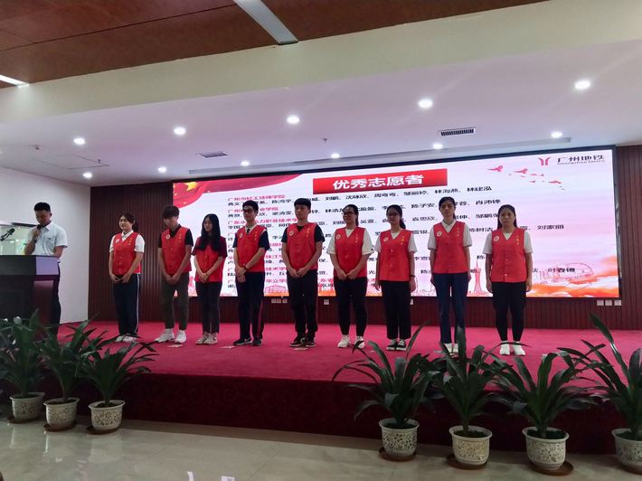 2019年5月10日15:00,运营四中心团委组织共建高校在镇龙车辆段举行了志愿服务表彰大会,参会人员有广州地铁运营四中心党委、团委、车服部门党委书记和10所高校的师生代表。机电工程学院出席表彰会的老师有机电工程学院党总支副书记梁超鹏、团总支书记严惠琴、青协指导教师武晓翠和优秀志愿者代表叶春镜、丘桂梅。