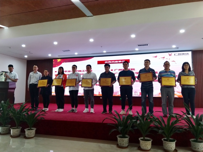 最激动人心的时刻就是表彰优秀共建单位、优秀志愿者和给共建单位授旗的环节了。我院截至目前派出了近三百名志愿者,616人次的志愿服务,累计志愿服务时长3696小时,被授予优秀共建单位。机电工程学院刘润升、陆彪才等12名学生被授予“优秀志愿者”荣誉称号。身着红马夹的志愿者们成为了保障地铁客运安全的重要力量,也是地铁站大客流中一道靓丽的风景线。