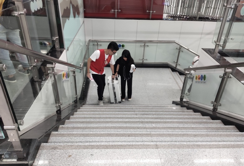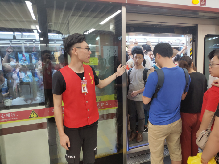 在志愿服务过程中,志愿者们用他们真挚的微笑服务地铁站的每一位乘客,帮助乘客解决他们的问题,如电扶梯是前往哪个方向?卫生间在哪里?应该走哪个出口?应该从哪里转线等。