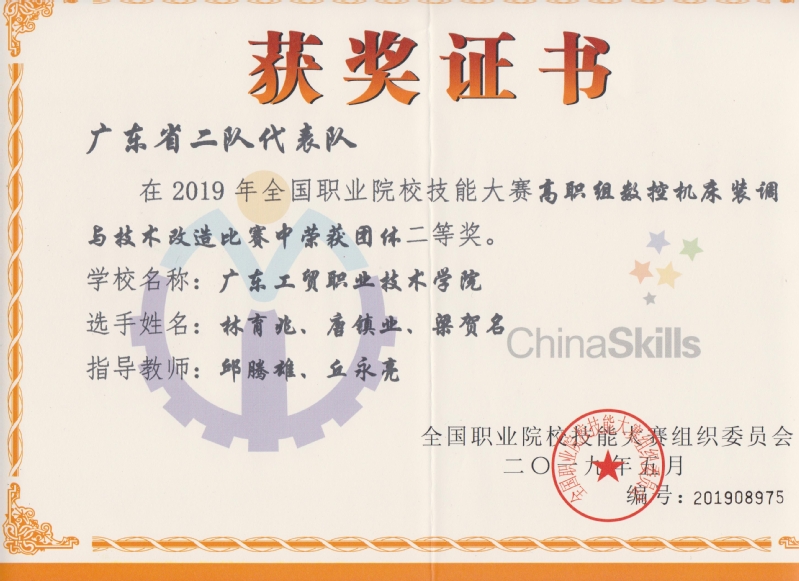 新葡的京官网高度重视,在机电工程学院相关领导的直接领导和安排下,新葡的京官网参赛队伍经过长期刻苦的强化训练、积极备战。最终新葡的京官网机电工程学院数控技术专业学生:梁贺名、唐镇业、林育兆(指导教师:邱腾雄、丘永亮),经过两天紧张激烈的角逐,代表广东省获得了2019年全国职业院校技能大赛“数控机床装调与技术改造”技能竞赛“二等奖”。