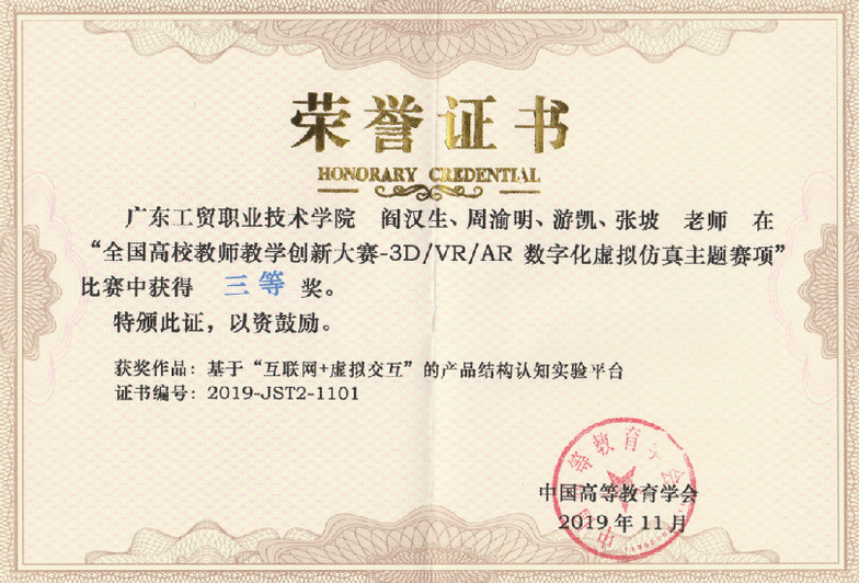 通过参赛,新葡的京官网教师更多地解了3D/VR/AR技术发展前沿以及在教学中的应用场景,也认识到和国内先进院校的差距,明确了今后努力的方向,收益颇丰,团队将在此基础上继续努力,争取为学校取得更多更好的荣誉。