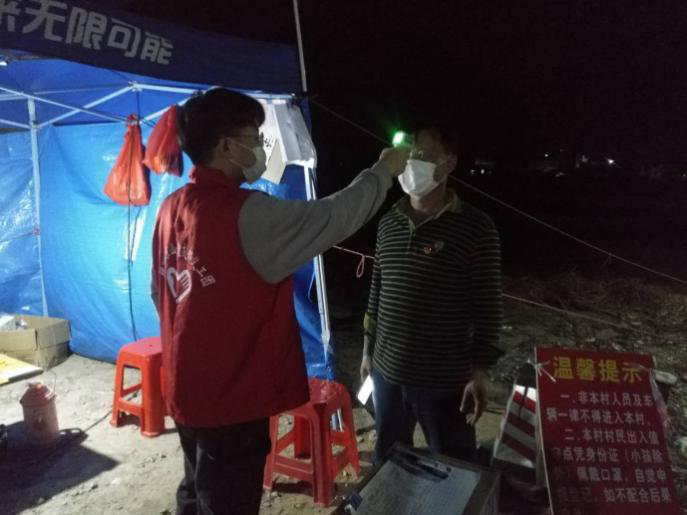 魏伟鹏同学正在为路人量体温