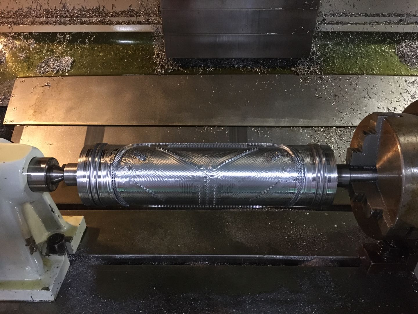 图2、3:四轴外圆轮廓刀路、口罩机核心部件成品