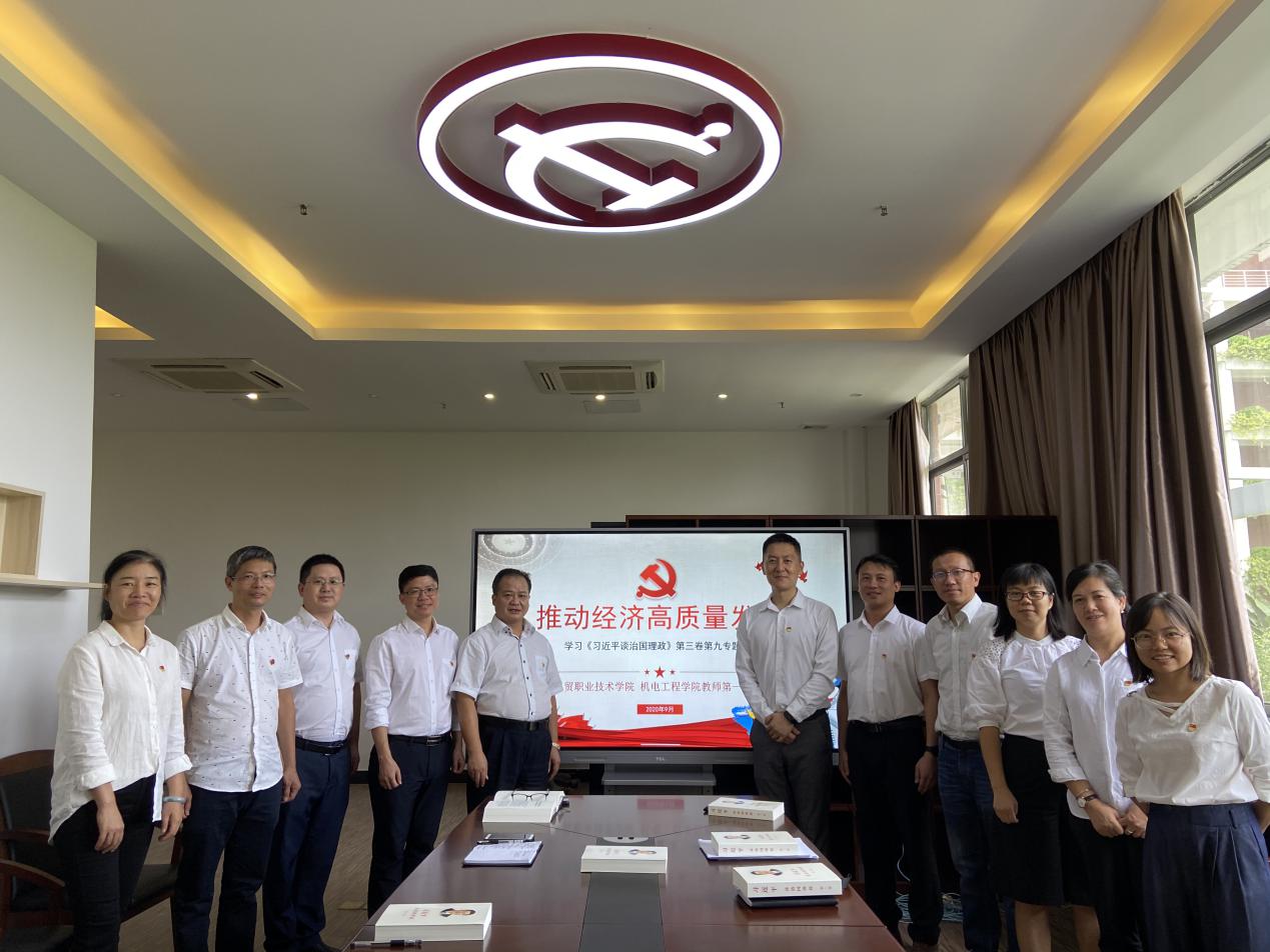 为贯彻落实广东省委组织部《关于印发<全省“党课开讲啦”活动实施方案>的通知》要求和学校组织部的部署安排,2020年9月29日下午,机电工程学院教师第一党支部全体党员在明德楼217国家样板支部党员活动室开展专题党课活动,集中学习《习近平谈治国理政》第三卷第九专题“推动经济高质量发展”,进一步把学习贯彻习近平总书记系列重要讲话精神不断引向深入,切实用讲话精神武装头脑、指导实践、推动活动。
