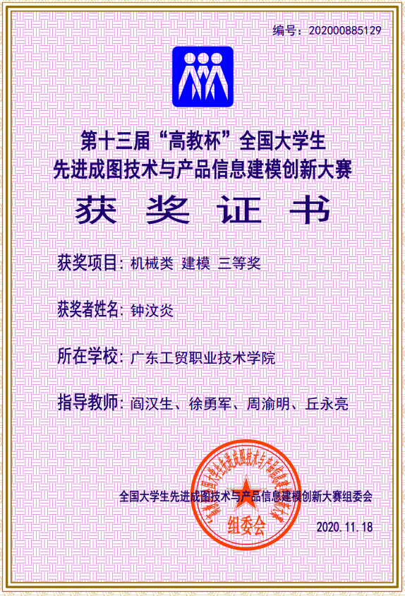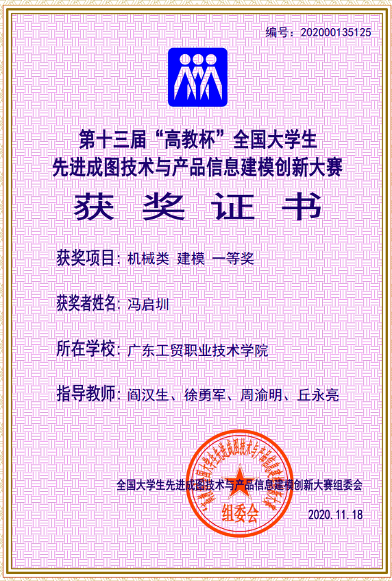 “高教杯”全国大学生先进成图技术与产品信息建模创新大赛由教育部高等学校工程图学课程教学指导委员会、中国图学学会制图技术专业委员会和中国图学学会产品信息建模专业委员会联合主办的图学类课程最高级别的国家级赛事,2018年被中国高等教育学会列入全国普通高校学科竞赛排行榜,成为国内最具权威性和代表性的34项大学生赛事之一。