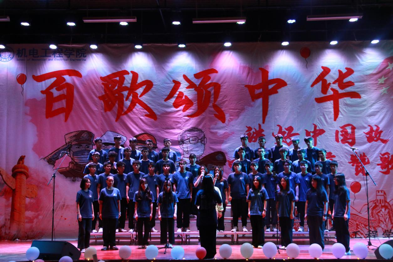 在主持人的介绍下,各个班级陆续登上属于他们的舞台,舞台上亮眼的聚光灯一齐照向机电工程学院学子们,随着音乐声的响起,同学们那激昂豪迈、催人奋进的乐曲围绕在本场观众的耳边。他们唱出最后一击的歌声,因为他们知道,这次的机会是在他们反复练习后,最后一次爆发的机会,唱出最好的一次。在这次的活动中有些班级十分有创意,统一的班服,整齐划一的手势,在无形之中带动了现场的氛围,使观众沉迷于他们的激情彭拜的歌声之中。有些班级的口号也是起得相当的气势磅礴,充满着斗志蓬勃。这一点一滴无不在显示着机电工程学院学子们背后为了本次活动所做的充足准备,在精彩的声音对决中,比赛不知不觉接近尾声。最后以飞久音乐社唱出的一首“一路向北”结束了本届百歌颂中华,接着以颁奖为环节,使本次活动完美落下帷幕。