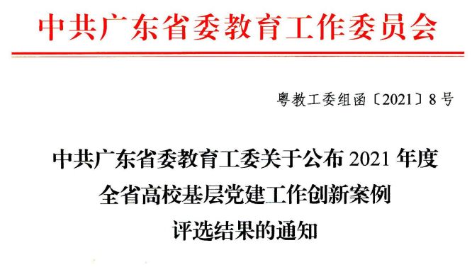 近日,在2021年度全省高校基层党建工作创新案例评选活动中,我院报送的《以建设国家级样板支部为引领,打造高素质教师队伍》项目荣获省级三等奖,为党建工作发展增添红色动能。