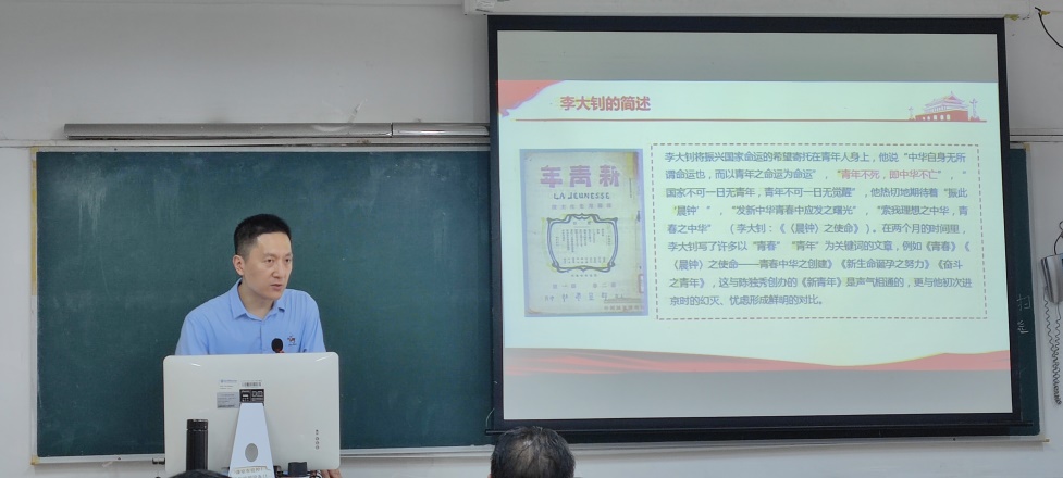 本次党课主题是讲授我党创始人之一李大钊的光荣事迹。原波书记从李大钊简述、严以修身的李大钊、二十世纪初中国的播火者、李大钊的干部教育观等四个篇章讲述了李大钊同志的事迹。李大钊的奋斗历程同马克思主义在中国传播的历史紧密相连,同中国共产党创建的历史紧密相连,同中国共产党领导的为人民谋幸福的历史紧密相连。他积极投身新文化运动,宣传民主、科学精神,抨击旧礼教、旧道德,向封建顽固势力展开猛烈斗争。发表《法俄革命之比较观》、《庶民的胜利》等文章和演讲,热情讴歌十月革命,是中国最早的马克思主义传播者。