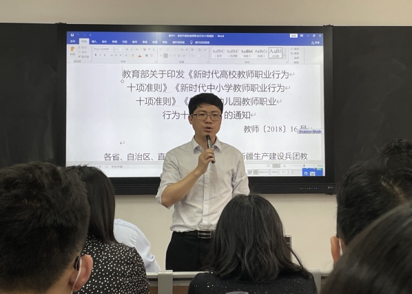 丘永亮结合上学期出现的一些教学不规范行为,深入解读新葡的京集团8814vip教师教学工作规范。明确任课老师要严格遵守课堂教学要求,严明职业规范;同时开展课堂教学自查工作,全面清查任课教师在课堂教学过程中是否存在违反高校教师职业行为十项准则和《教师教学工作规范》课堂教学“十不准”的情况。