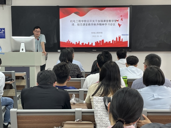 为贯彻教务处“关于进一步加强课堂教学管理、规范课堂教学秩序的通知”精神,机电工程学院于3月15日下午三点在天河校区东区204室召开会议。机电工程学院全体教职工参加会议,会议由机电工程学院副院长丘永亮主持。