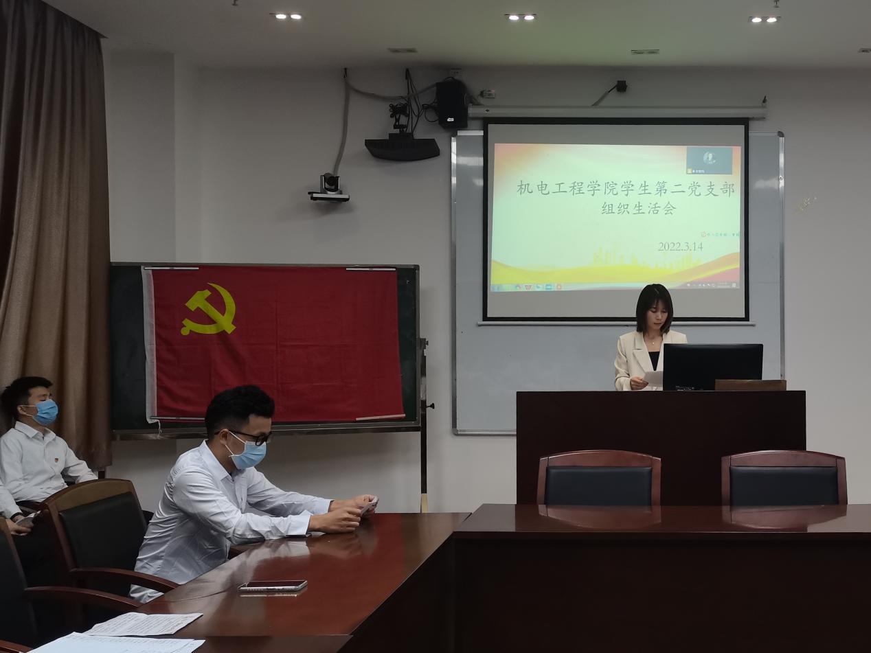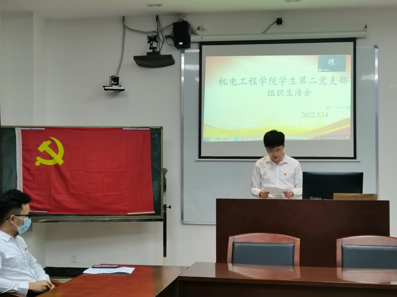 按照学校党委的部署,机电工程学院学生第二党支部于2022年3月14日晚7点开展2021年度组织生活会开展批评与自我批评,出席本次大会的有机电工程学院学生第二党支部书记史旭同志、支委邵盼盼同志、支委王锐斌同志、支部所有在校学生党员,因疫情防控要求,支部所有校外党员参加线上腾讯会议,大会由机电工程学院学生第二党支部支委邵盼盼同志主持。