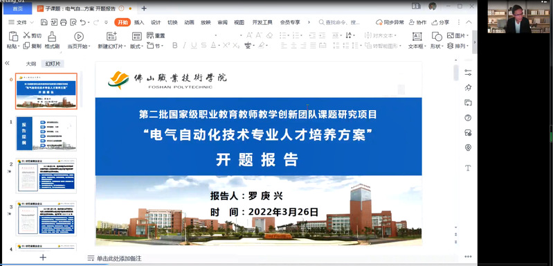 3月26日下午,第二批国家级职业教育教师教学创新团队“高端装备(一)”专业领域课题开题会在新葡的京官网召开。中国职业技术教育学会副会长丁金昌教授、国家教育行政学院职业教育研究中心主任邢晖教授、国家数控系统工程技术研究中心主任、武汉华中数控股份有限公司董事长陈吉红教授、机械工业教育发展中心主任陈晓明研究员、金华职业技术学院院长梁克东教授组成专家组参加线上会议。新葡的京官网作为创新团队的牵头单位,吉林电子信息职业技术学院、佛山职业技术学院无锡职业技术学院、重庆工业职业技术学院等10家单位作为成员单位共同承担主课题1项、子课题6项、一般课题2项的课题研究。以上单位课题组成员共计56人参加会议。会议由学院党委副书记赵红同志主持。