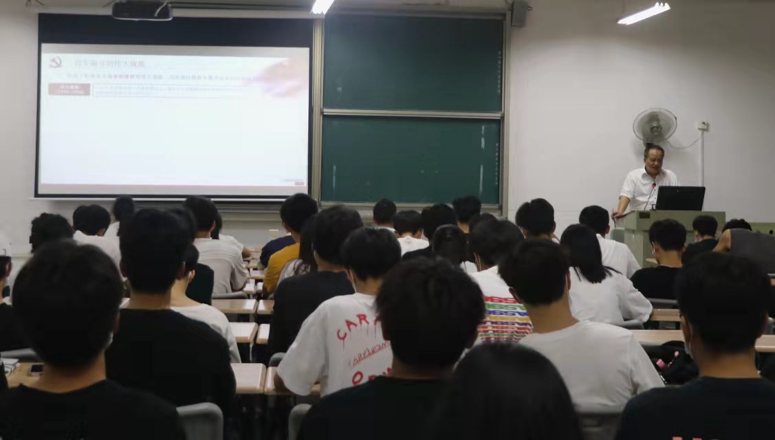 为深入贯彻落实党的十九届六中全会精神,进一步大学生的思想政治觉悟,坚定共产主义理想信念。2022年4月27日晚上19:00,机电工程学院党总支书记邵超城同志在白云校区明德楼2-502开展“百年奋斗谋复兴,砥砺前行新征程”专题党课,机电工程学院近百名入党积极分子参加此次党课。