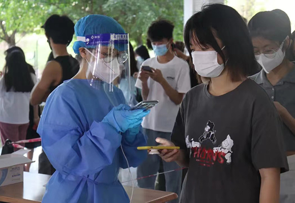 夏天将近,为了更好的开展核酸检测工作,志愿者们提前到场,穿好防护服,给核酸采样管贴上标签,协助学校管理人员进行准备工作。志愿者们穿着闷热的防护服,顶着炎炎烈日,兢兢业业地坚守着自己的岗位,维持着现场的秩序,并协助测量体温、核对核酸码等工作。