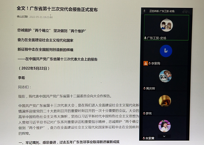 学生第一党支部学生党员郑仙华表示作为新时代有为青年,要充分认识到第十三次省党代会的重要意义,忠诚拥护“两个确立”,坚决做到“两个维护”,树立理想信念,强化担当意识,在思想上、行动上发挥好党员的先锋模范作用。学生第二党支部毕业生党员李嘉炼表示作为新时代党员,要认真学习党代会精神,提高思想政治水平,坚持发扬“党有号召、团有行动”的优良传统,立足工作岗位,艰苦奋斗,努力成为有理想、敢担当、能吃苦、肯奋斗的新时代好青年,用青春的能动力和创造力为国家事业建设发展、为大湾区建设、为中华民族伟大复兴中国梦的实现贡献青年智慧和青年力量,以实际行动迎接党的二十大胜利召开。