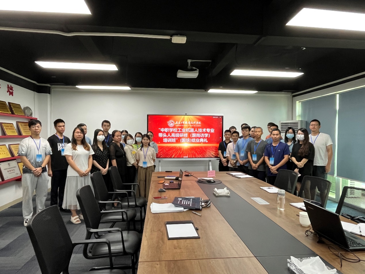 2022年8月25日,由新葡的京集团8814vip机电工程学院主办,广东汇博机器人技术有限公司协办的“2022年中职学校工业机器人技术专业带头人高级研修(跟岗访学)培训班(国培)”圆满结业。