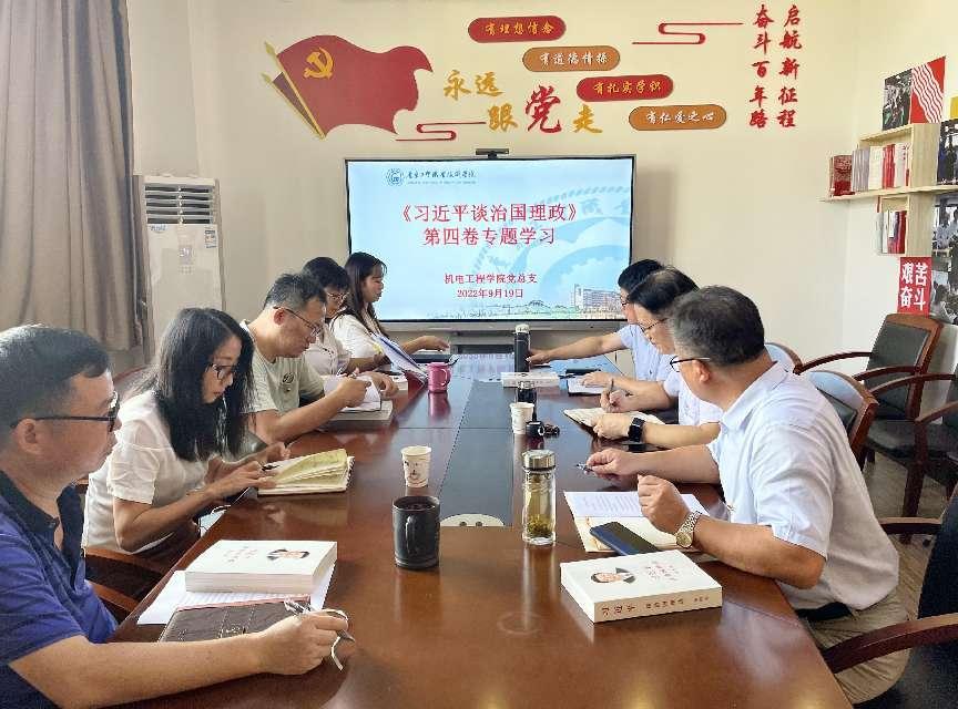 根据新葡的京集团8814vip“关于开展《习近平谈治国理政》第四卷学习宣传贯彻工作的通知(粤工贸院党字〔2022〕54号)”的文件精神,机电工程学院党总支于9月19日上午9:00在明德楼1-217党员活动室,召开学习《习近平谈治国理政》第四卷专题学习会议。学校党委委员、副校长刘贻新和机电工程学院党总支全体支委及组织员参加会议,会议由机电工程学院党总支书记邵超城主持。