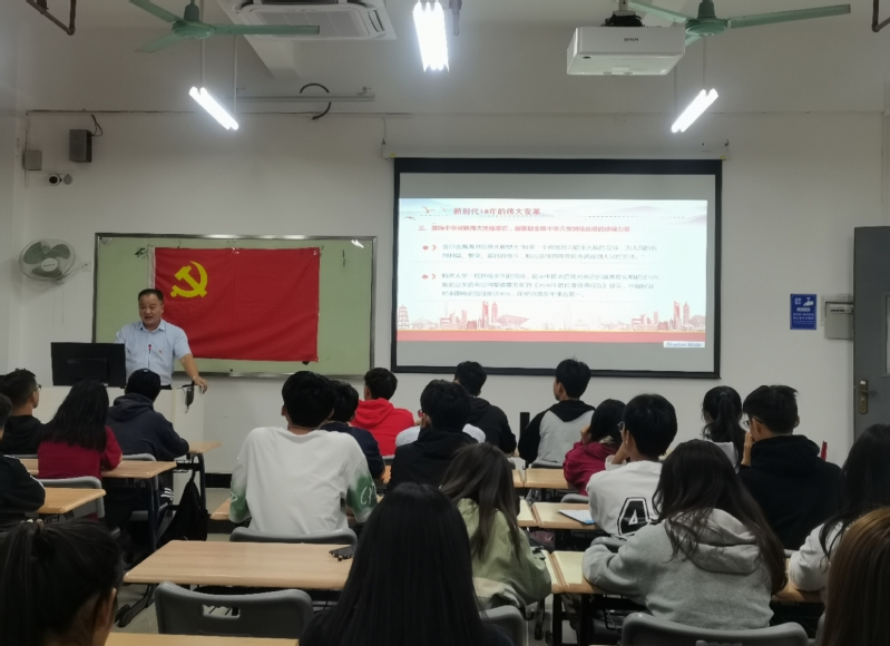 为深入学习贯彻党的二十大精神,10月18日晚上7:00,机电工程学院党总支书记邵超城同志在白云校区明德楼1-520室为本期各团支部推荐的入党积极分子上党课。