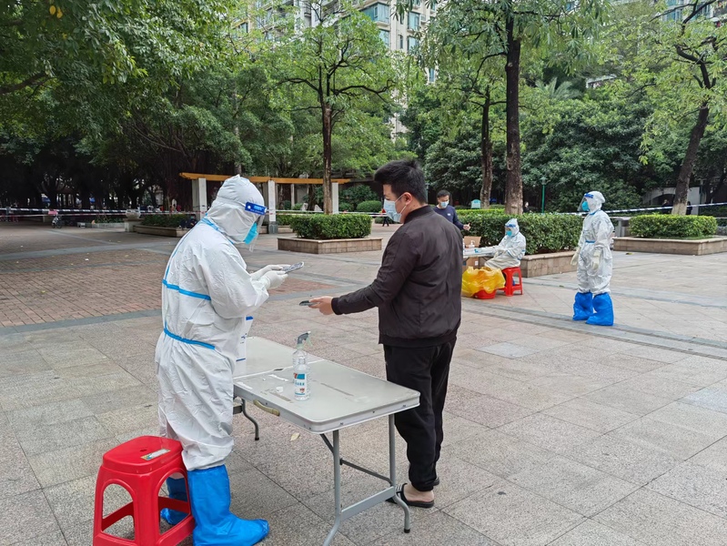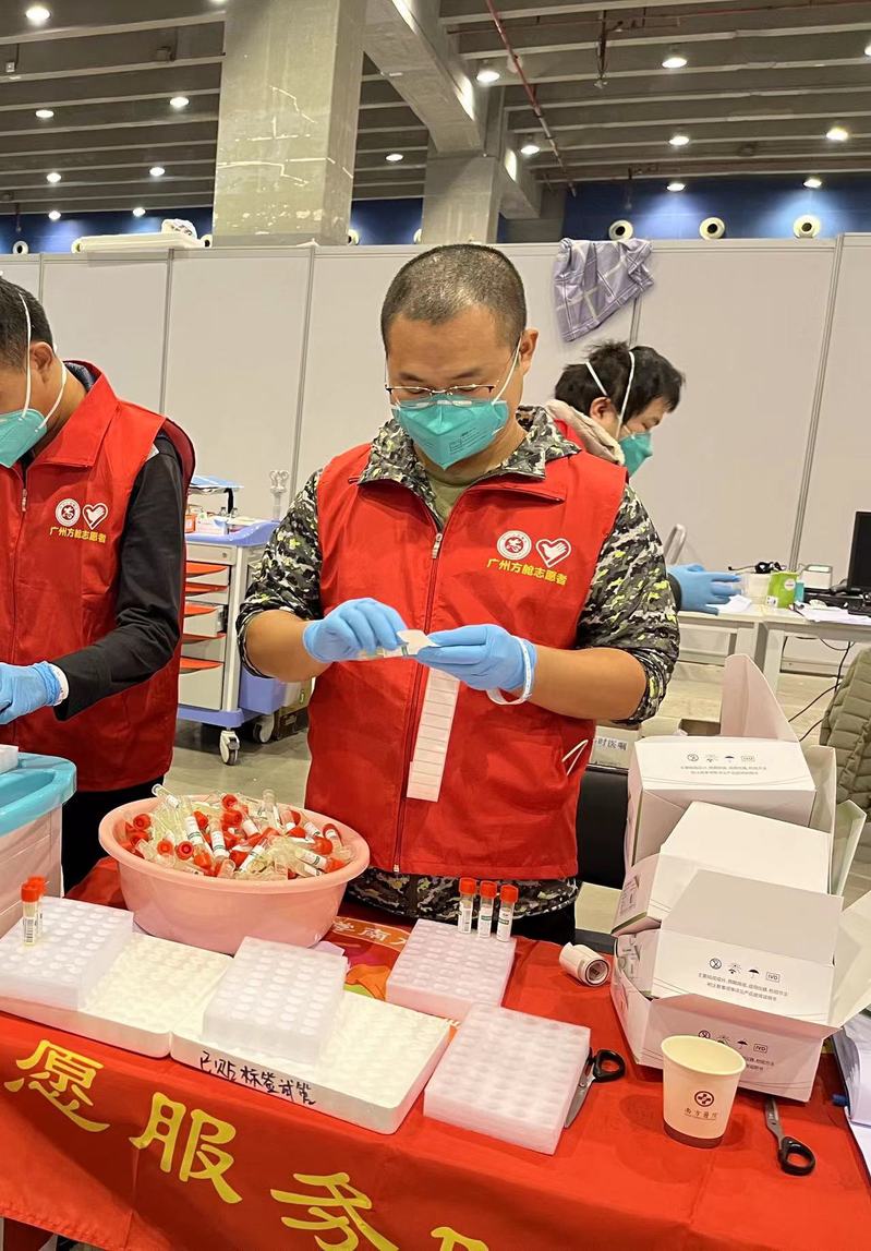 周佳杰所在海珠区凤阳街逸景翠园西区封控后,他便在小区做起了志愿者,和医护人员上高风险楼为红码人员测核酸,为封控楼栋搬运物资。身穿大白衣服,半天下来全身都湿透了。后来自己所在楼栋也成了高风险,他也被封控了,但是封控并没有封住周佳杰为人民服务的心,于是他又继续当起楼道的志愿者,负责楼层的消杀工作。