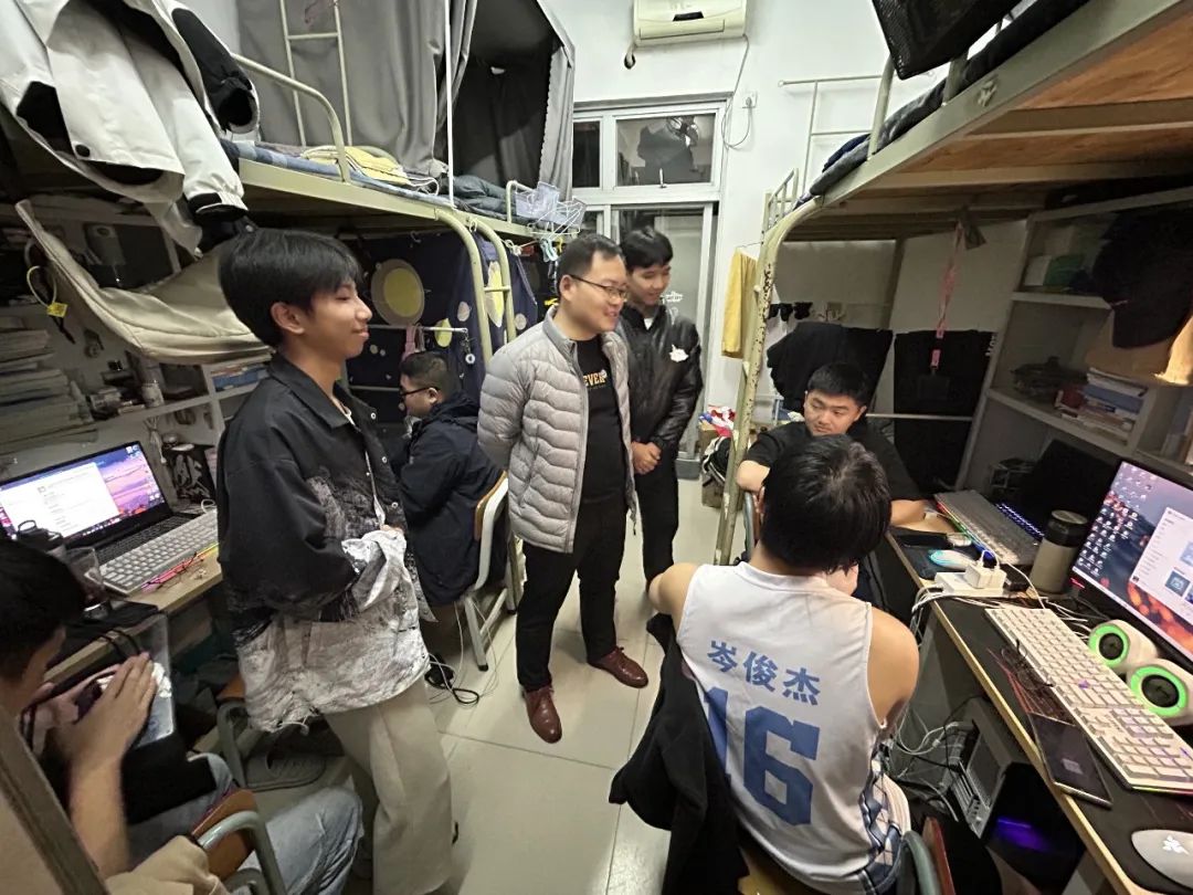 原波老师利用值班时间走访6栋21模具4班学生宿舍,解答同学们对于求职方面的疑惑,告诫同学们不能好高骛远,眼高手低,要不断从学历或专业技能方面提高和充实自己,不要成为新时代的孔乙己,然后跟同学分享了自己之前在北京住地下室的艰难求学历程,告诉同学们要珍惜现在美好的生活和优渥的学习条件,同学们都深受感动,备受鼓舞,连续聊了一个多小时。
