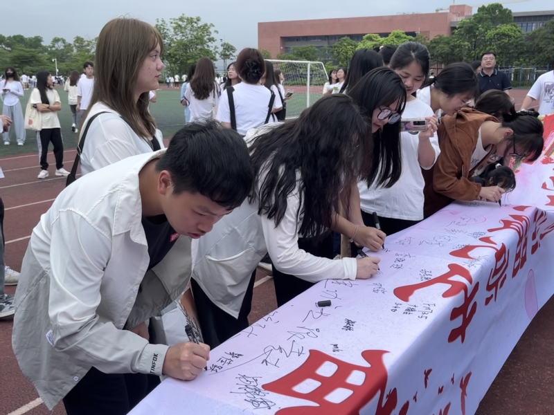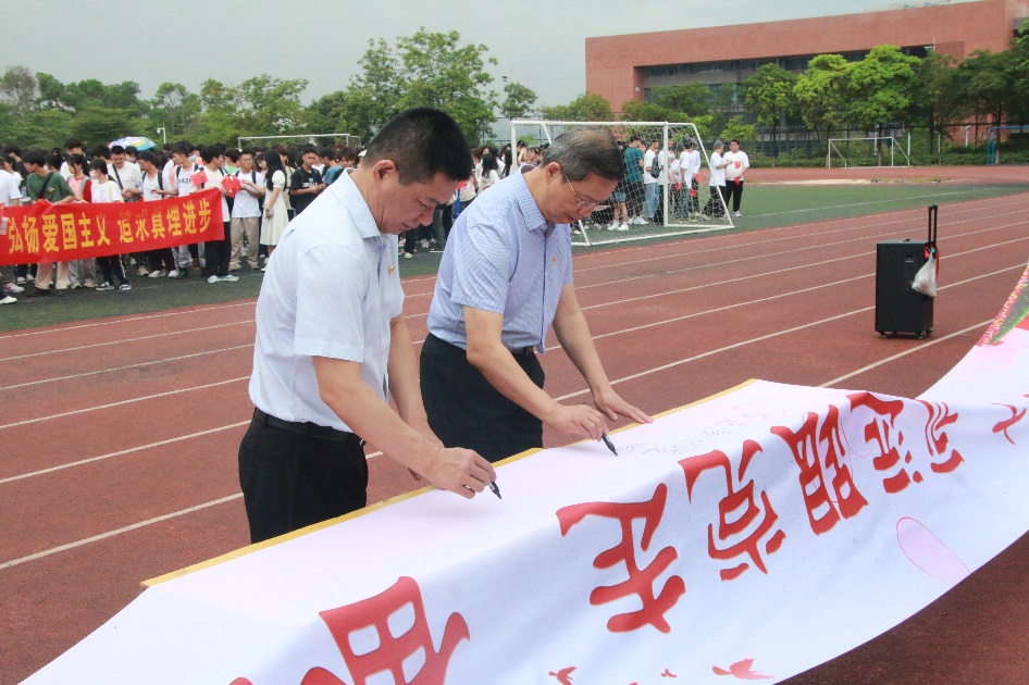 上午七点四十分,升旗仪式准时开始。国旗护卫队迈着铿锵有力的步伐护送国旗进场,伴随着庄严的《中华人民共和国国歌》,五星红旗冉冉升起,全体师生庄严肃立,齐唱国歌、行注目礼。校党委副书记、校长何汉武在国旗下发表讲话,希望全校青年团员继承和发扬伟大建党精神和五四精神,秉承“寻真求是,格物致知”的校训精神,撸起袖子加油干,以实际行动为广东在推进中国式现代化建设中走在前列贡献工贸的青春力量。最后,机电工程学院合唱团齐唱中国共产主义青年团团歌《光荣啊!中国共青团》,师生代表在横幅上签名留念。