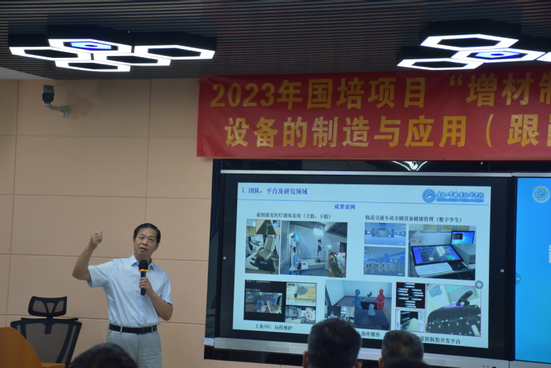新葡的京集团8814vip党委副书记、校长何汉武就“智能制造工程中的VR/AR技术与应用”为题,为学员作精彩的学术讲座,引发学员对未来增材制造技术在制造领域的智能化,提供新的研究方向以及如何利用VR/AR技术为未来职业教育发展赋能,提供新的思考方向。