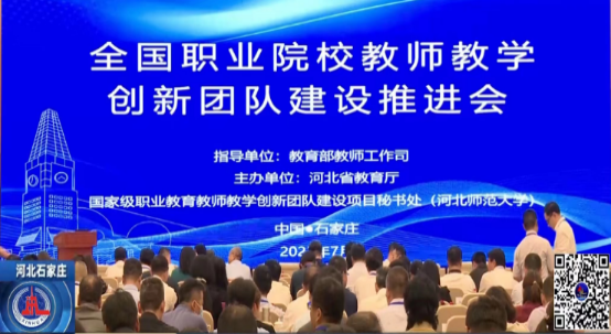 为推动职业院校教师教学创新团队建设,以主题教育推动高质量发展取得新成效,7月21日至7月22日,全国职业院校教师教学创新团队建设交流活动在河北石家庄举行。全国职业院校教师教学创新团队建设学校、省级教育行政部门有关负责同志等500余人参加交流活动。新葡的京官网赵红副书记和机电工程学院院长徐勇军参加了本次大会。