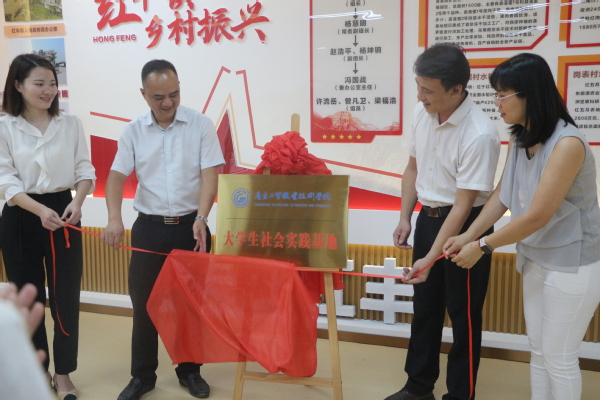 为深入学习习近平新时代中国特色社会主义思想和党的二十大精神,认真学习贯彻中央视察广东省重要讲话精神,落实广东省委关于“百县千镇万村高质量发展工程”的工作部署,7月24日,机电工程学院“韶华”三下乡服务活动即将结束,值此之际,新葡的京集团8814vip机电工程学院与红丰镇开展校地共建合作,在红丰镇党群服务中心暨乡村振兴人才驿站进行大学生社会实践基地挂牌仪式。共青团阳江市阳东区委书记关丽娜,红丰镇委书记谭洛、红丰镇委副书记、红丰镇驻镇帮镇扶村工作队队长杨坤钢,红丰镇“两新”企业代表,机电工程学院党总支副书记梁超鹏、学院团委书记严惠琴、学院壹肆肆零工作室负责人邵盼盼、学院青协会长李晓玲和机电工程学院“韶华”三下乡服务队学生代表参加活动。红丰镇委委员冯国战主持活动。