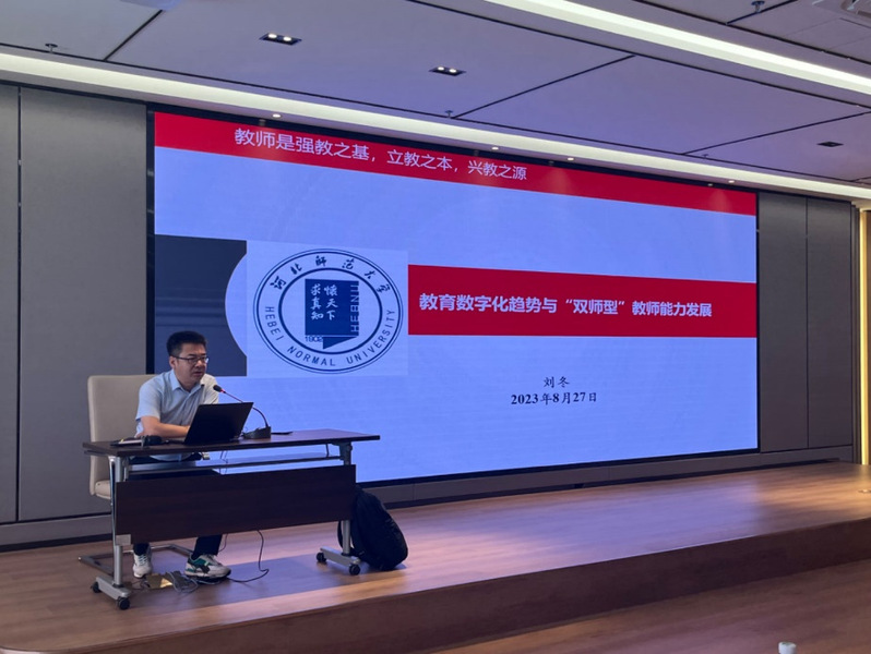 国家级职业教育教师教学创新团队建设项目秘书处副主任刘冬做了“教育数字化趋势与“双师型”教师能力发展”的主题报告,强调数字化转型下人才培养的定位和调整。从宏观上讲解了全国职业教育师资培养、培训的总体情况,分析了职业教育师资队伍建设面临的形势和问题,并从四个方面指出了首批创新团队建设需要提升的方面,提醒第二批创新团队建设中需要注意的问题,强调创新团队建设过程性建设原则。