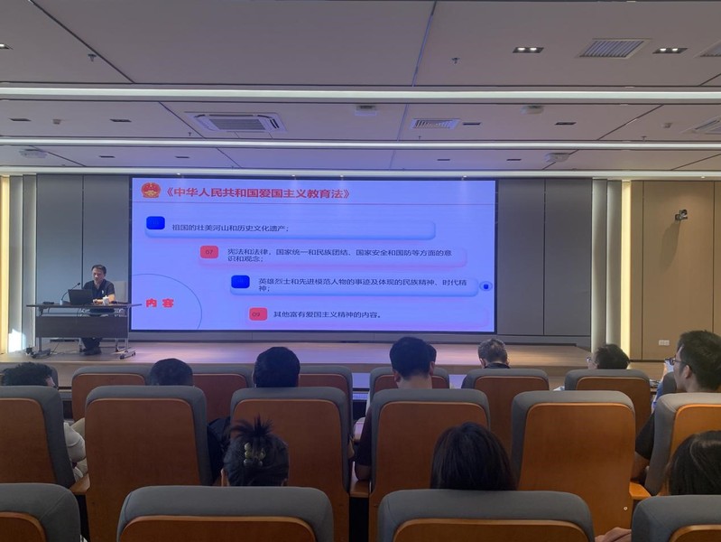 机电工程学院党总支副书记梁超鹏领学《中华人民共和国爱国主义教育法》和习近平文化思想。爱国主义教育法规定了爱国主义教育的主要内容,涵盖思想政治、历史文化、国家象征标志、祖国壮美河山和历史文化遗产、宪法和法律、国家统一和民族团结、国家安全和国防、英烈和模范人物事迹等方面。梁超鹏传达了习近平总书记对宣传思想文化工作作出的重要指示和全国宣传思想文化工作会议精神,以及广东省委常委会对深入学习贯彻习近平文化思想所提出的四个要点,号召全体师生要认真学习贯彻习近平总书记重要指示精神,深入学习贯彻习近平文化思想,把习近平文化思想学深悟透,自觉贯彻落实到宣传思想文化工作各方面和全过程,自觉担起新时代新的文化使命。