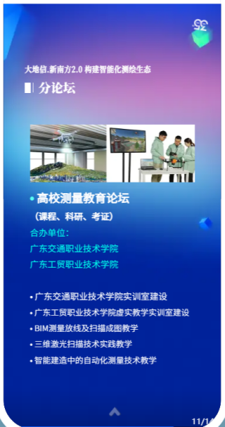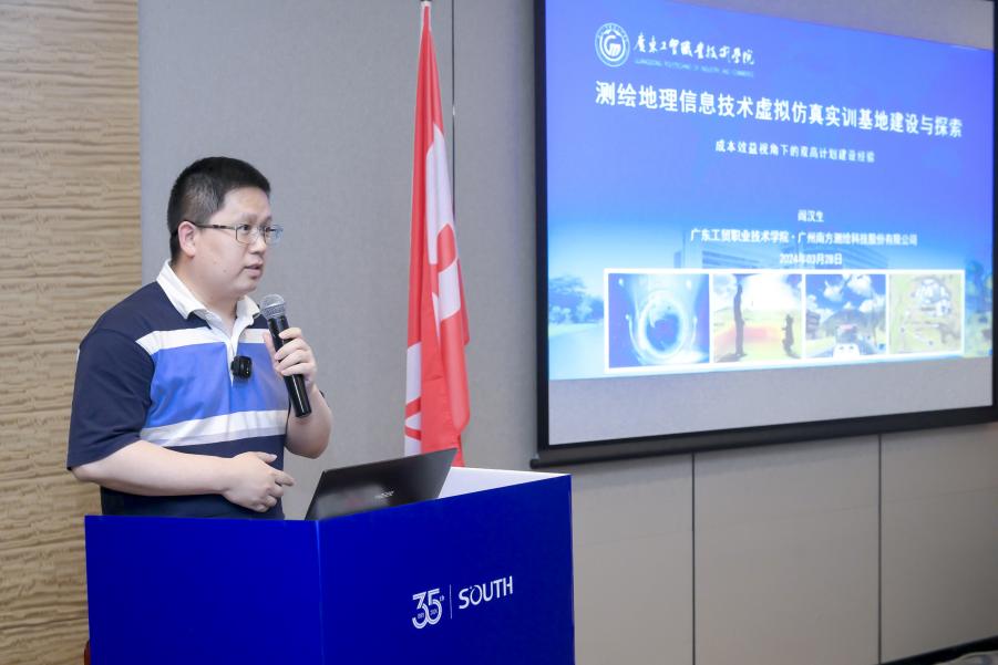 南方测绘作为学校测绘学院长期合作伙伴,深度参与了虚拟仿真实训基地的建设,包括课程开发、环境改造等。大会组办方特别设置了“高校测量教育”分论坛,并由新葡的京官网和广东交通职院任合办单位。阎汉生老师作为基地建设办的技术骨干,受邀作为下午分论坛的发言嘉宾。