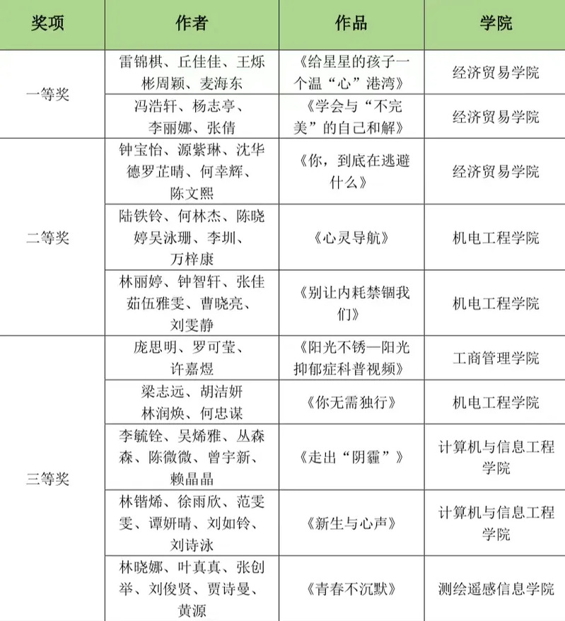 本次活动收到了近40份作品的投稿,经过激烈角逐和层层评审,最终评选出10份优秀作品。这些优秀作品后续将作为心理科普的优秀资源,为更多同学提供学习和借鉴的机会。结果如下: