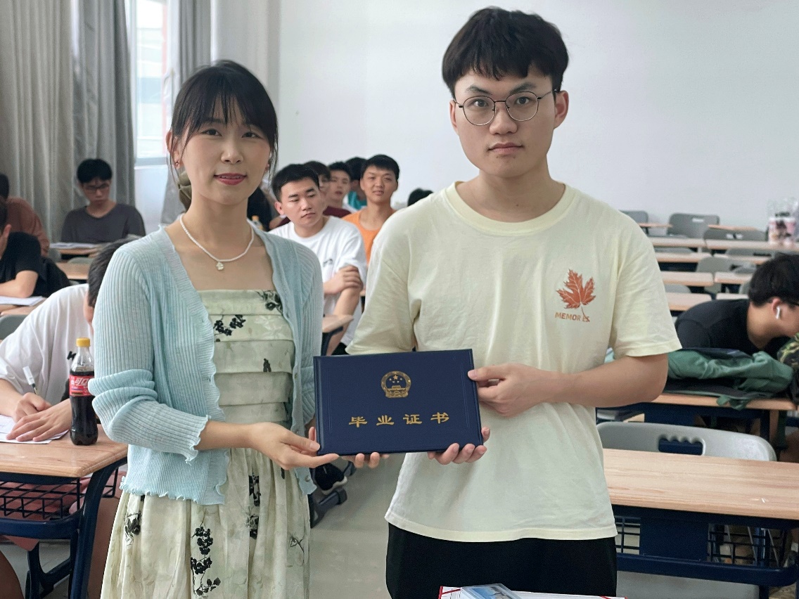 青春的注脚在绽放,过往的序章又回首。我院黎雪媚等20名学生被评为“优秀毕业生”,杨启德等13名学生被评为“工贸职业技师”,校领导为获奖者颁发荣誉证书。教室里,班主任在为毕业生分发毕业证书,毕业勋章等,鼓励大家在未来的道路上继续奋发向前,为社会、为国家贡献自己的力量。