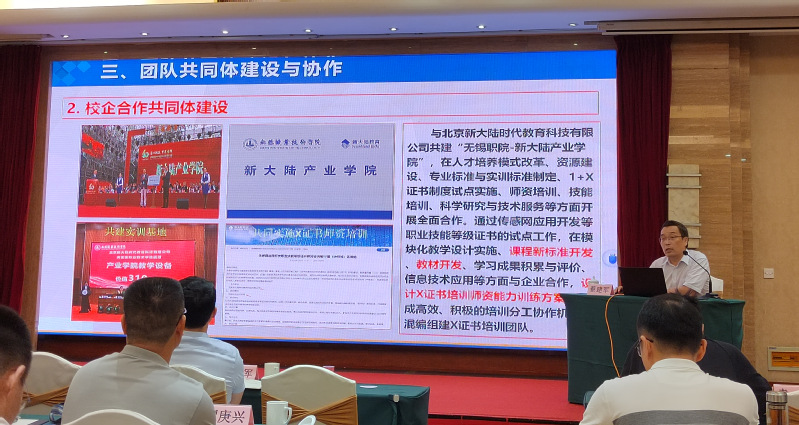 在专家指导培训环节,阎汉生代表学校汇报了国家创新团队和课题建设情况,共同体其他十家成员单位也分别进行了工作汇报。来自首批国家级创新团队建设单位、天津轻工职业技术学院校长李云梅,苏州经贸职业技术学院副校长盛立强,来自湖南师范大学、同时也是国家创新团队评审专家的唐智彬教授,分别针对团队整体能力的提升增量、教师个体能力的“一师一案”规划、模块化课程体系建设和具体实施情况等核心问题进行了逐一点评,并为接下来的验收工作给出了参考建议。