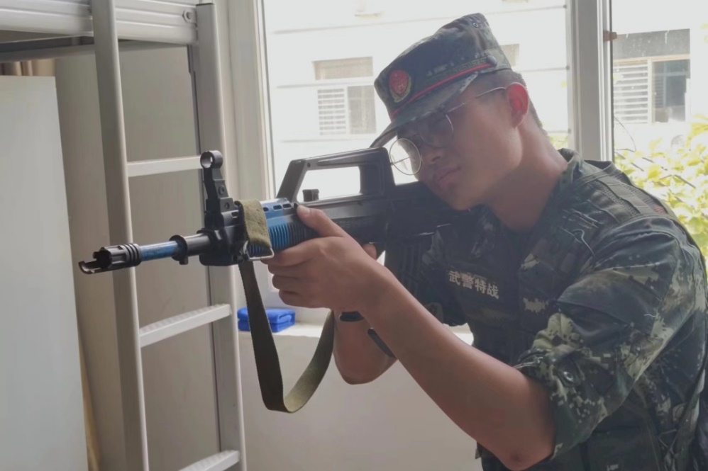 程正宇,来自湖南常德,因为从小热爱国防事业,所以积极参与了本次活动,这次的经历也阶段性的实现了他的梦想。7月12日至16日,程正宇在广州铁路职业技术学院参加了广东省举办的省赛,在省赛中脱颖而出,获得了手榴弹投掷第一、蛇行绕杆第七以及轻武器射击第七的优异成绩,被广东省选入代表队备选,又经过为期10天的专项训练后,成功入选广东省代表队正式队员。