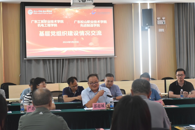 交流会上,广东松山职业技术学院先进制造学院党总支书记赵保宁致欢迎辞。双方党总支书记邵超城、赵保宁分别介绍各自党组织基本情况、党建工作开展情况及特色做法。双方院长罗庚兴、田学锋分别介绍各学院专业设置、课程建设、师资团队等方面情况。双方教师党支部书记原波、曹智梅就“双带头人”教师党支部书记工作室和“全国党建工作样板党支部”建设进行经验交流。