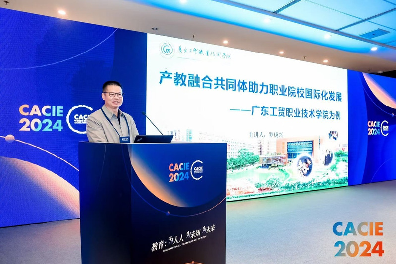 罗庚兴院长在会上以《产教融合共同体助力职业院校国际化发展——新葡的京集团8814vip为例》为题作分享报告,介绍新葡的京官网产教融合的基本情况,分享建设经验,指出产教融合需要对应岗位群需求,以产引教,以产改教,深化职业教育校企合作育人改革。