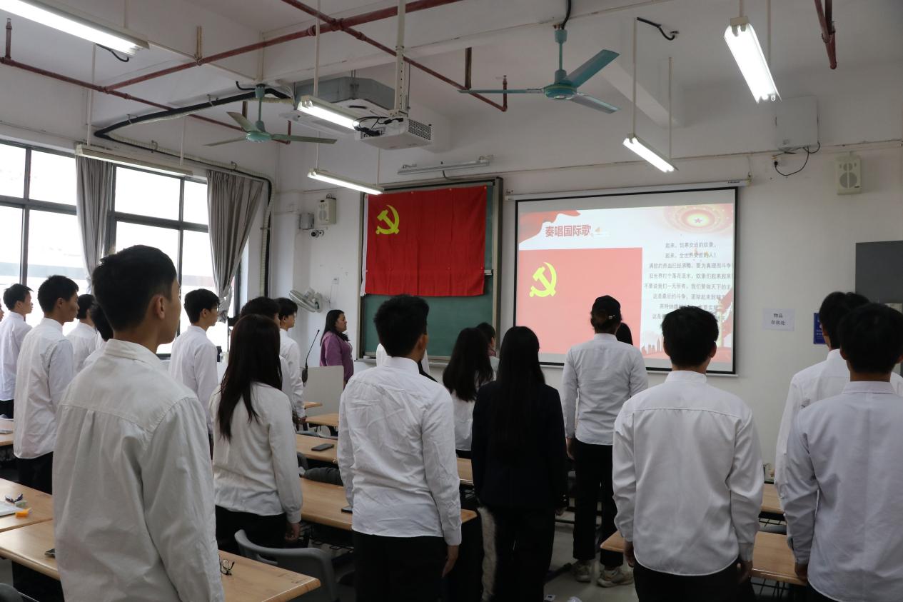 第二个议题是对彭依雨等8名预备党员的转正申请进行讨论。会上,吴文婷同志清点到场人数,并宣读本次大会的各项议程。伴随着《国际歌》的奏响,大会拉开序幕。在庄严的党旗下,8名预备党员就自己成为预备党员这一年期间的思想、学习、工作、生活等各方面进行总结性汇报,并进行答辩。他们表明自己会时刻以一名优秀党员的标准严格要求自己,牢记入党时的誓言,在思想上和行动上紧跟党的步伐,争做优秀共产党员。