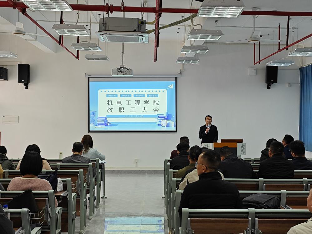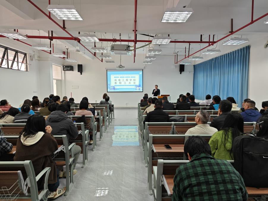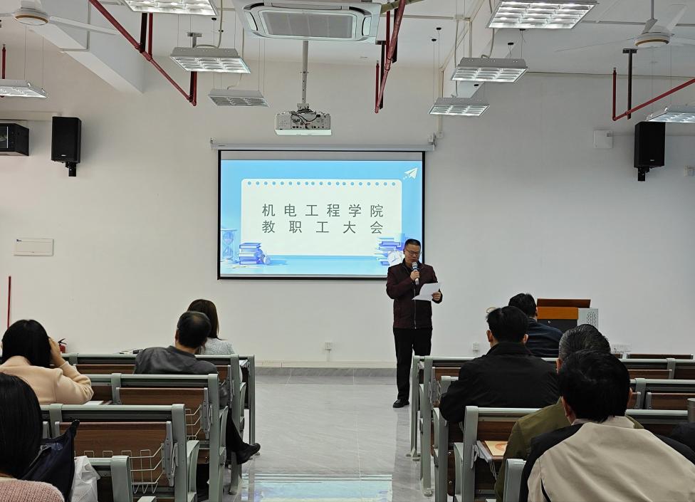 2月25日下午2点,机电工程学院在致知楼801室召开2024-2025学年第二学期全院教职工大会,全体教职工参加会议,会议由机电工程学院党总支书记梁超鹏主持。