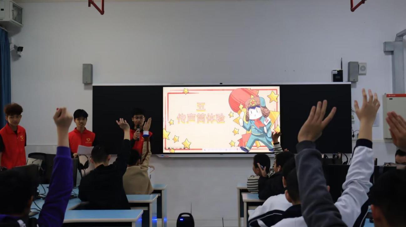 雷锋精神,口口相传。志愿者通过小小传声筒将雷锋精神进行传播,志愿者引导学生分别站在传声筒的两端,一端学生将自己接收到的雷锋语录进行传声,接收端的学生说出听到的语录。通过传声筒活动让雷锋精神在互动体验中扎根,激发他们向上向善的力量。
