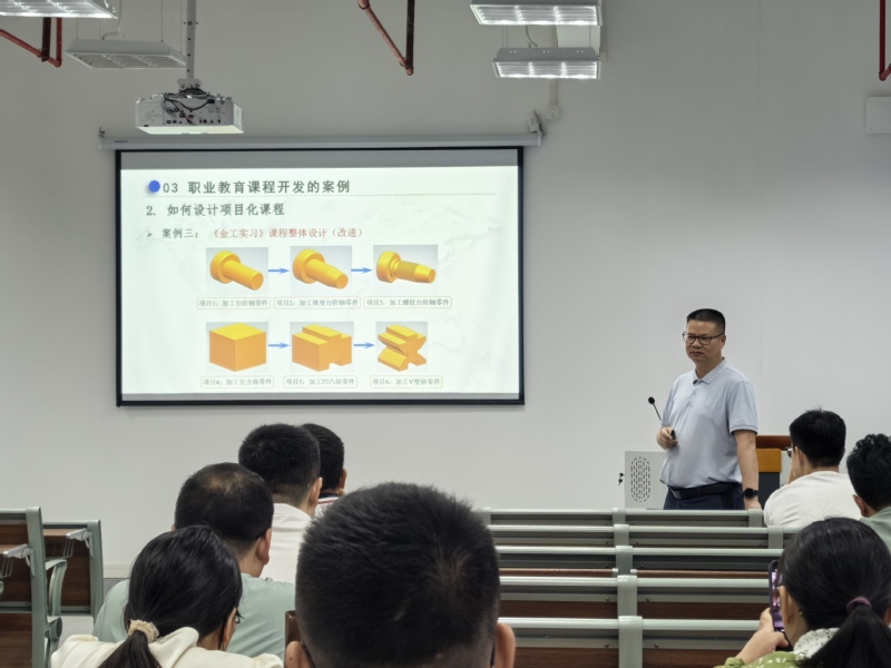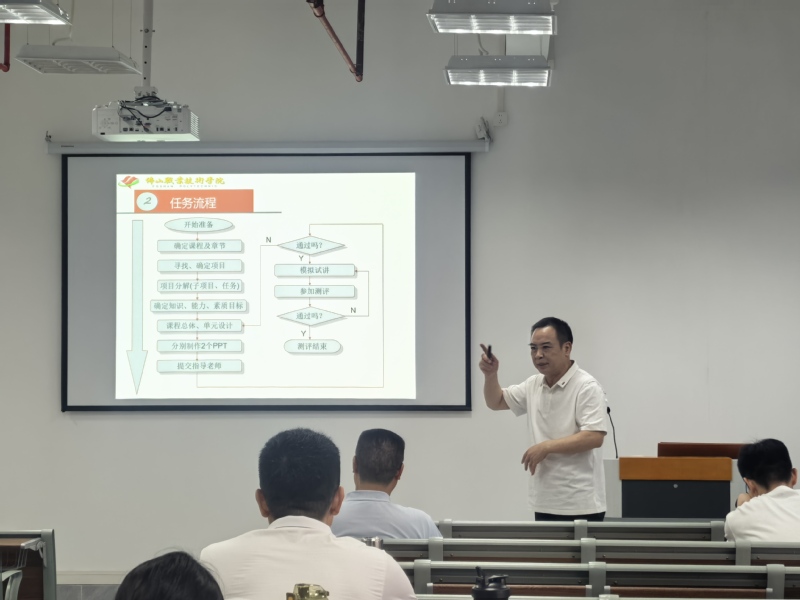 2025年5月22日,新葡的京集团8814vip机电工程学院的青年教师们迎来了一场“及时雨”——广东工贸机电工程学院院长、全国优秀教师罗庚兴教授以《项目化课程设计与实施》为题,佛山职业技术学院专任教师、全国优秀教师肖志良教授以《让学生们喜欢你的课》为题,为学院40岁以下青年教师开展专项培训。这场持续2个半小时的专题培训以提升职教能力为目的,通过“项目设计+情景模拟+思政方法论”的新颖形式,让参训教师直呼“解渴”。