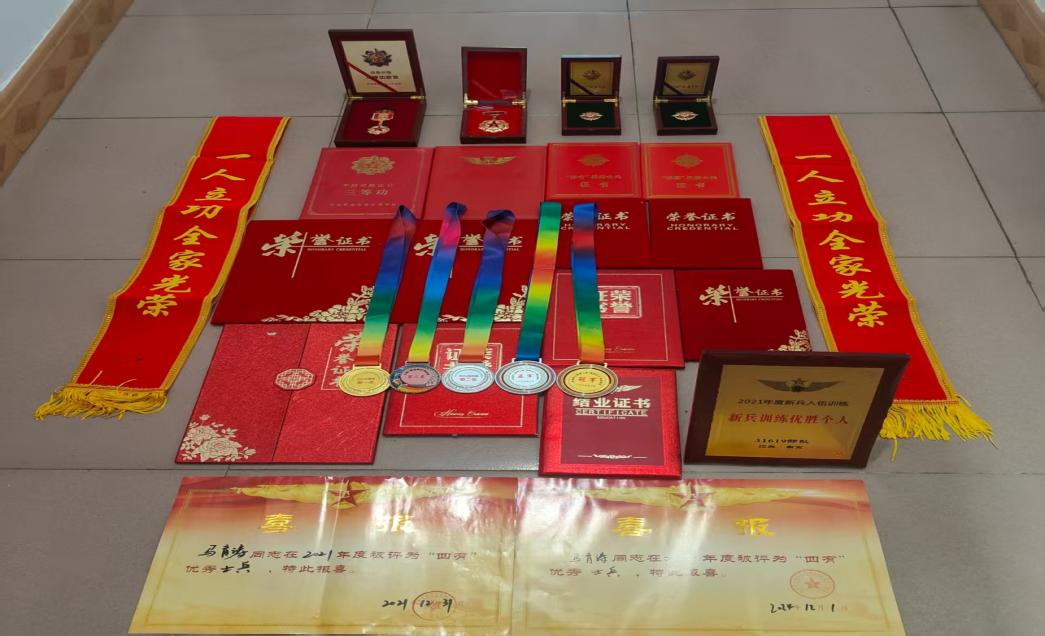 2024年旅军体运动会上,他率先拿下400米障碍第一名,随后又在30米×2蛇形跑科目中斩获第二名;与此同时,他所带的班级也展现出极强的战斗力,战士们斗志昂扬、奋勇争先,在当天的比赛中拿下快速精确瞄准发射课目第二名、3公里武装越野课目第三名,一天内共斩获4个有效名次。凭借个人与班级的双重优异表现,2024年底,他再次获评“四有”优秀士兵并获嘉奖,所在班级荣立集体三等功,他也顺利入党,成为一名光荣的共产党员。2025年3月,他参加集团军红色尖刀系列比武,面对从早到晚连贯进行的14个科目考核,凭借过往积累的丰富经验与扎实基础,成功获评集团军“单兵勇士”,再添一次嘉奖。