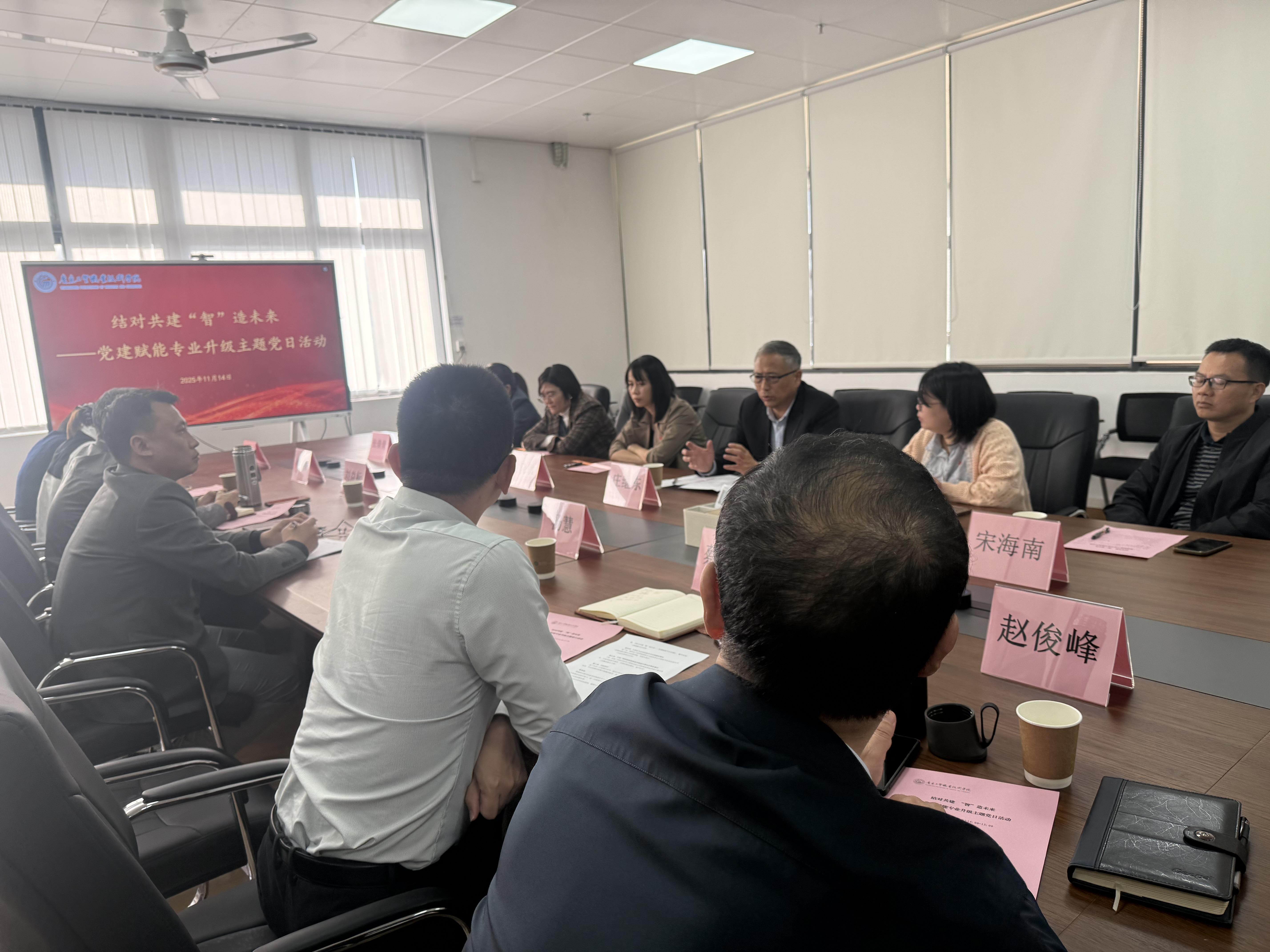 根据省委教育工委关于开展公办高校与民办高校党建和思想政治工作结对共建工作的部署要求,11月14日,广州现代信息工程职业技术学院智能制造学院院长庄继东、智能制造学院党总支副书记苏润基等一行7人莅临机电工程学院开展结对共建交流,共过结对共建“智”造未来——党建赋能专业升级主题党日。组织宣传统战部部长杨慧、机电工程学院党总支书记梁超鹏及机电工程学院相关人员参加了活动。