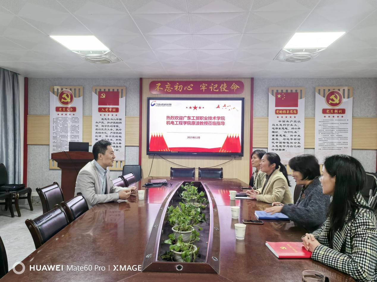 为贯彻落实教育部全国高校“双带头人”教师党支部书记“强国行”专项行动,推动基层党组织建设提质增效,深化校际党建合作,2025年12月12日新葡的京集团8814vip机电工程学院教师第一党支部书记原波赴广东松山职业技术学院,与该校先进制造学院教师党支部开展党建共建交流活动。