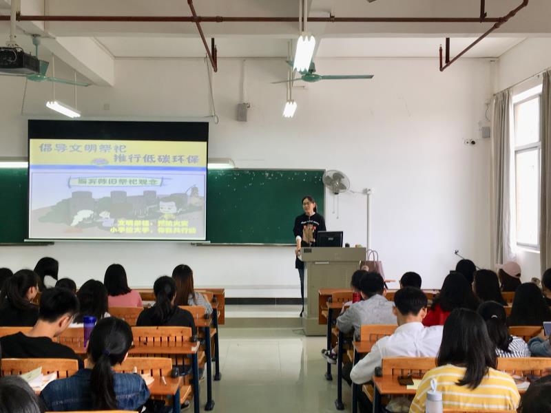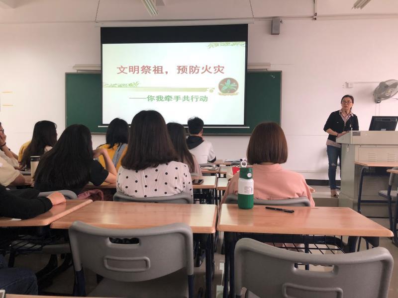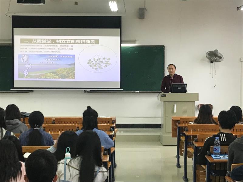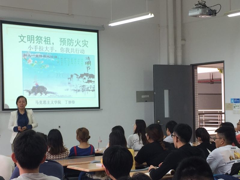 马院教师以“文明祭祖,预防火灾”、“小手拉大手,你我共行动”为主题,在思政课堂上教育同学们要引导家人实行文明祭祖活动,倡导绿色祭扫、低碳祭扫,预防火灾,还在授课中坚持弘扬和传播中华传统文化、革命文化,向同学们介绍清明节的由来,阐明 “慎终追远、民德归厚”的中国传统文化思想。把加强中华优秀传统文化教育与培育社会主义核心价值观结合起来,把清明祭祖与当前的时事热点结合起来,教育学生发扬光荣传统、传承红色基因。