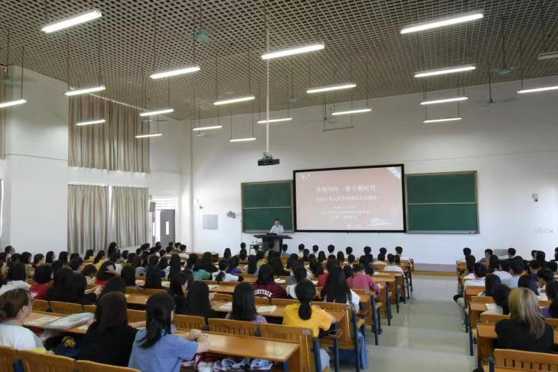 汤书记讲课的专题是“壮丽70年,奋斗新时代——庆祝中华人民共和国成立70周年”。汤书记围绕70年沧桑巨变,中国面貌变化述评;70年光辉历程,宝贵经验和现实启示;策马新时代,奋进新征程等方面进行了多维度分析和深入解读。