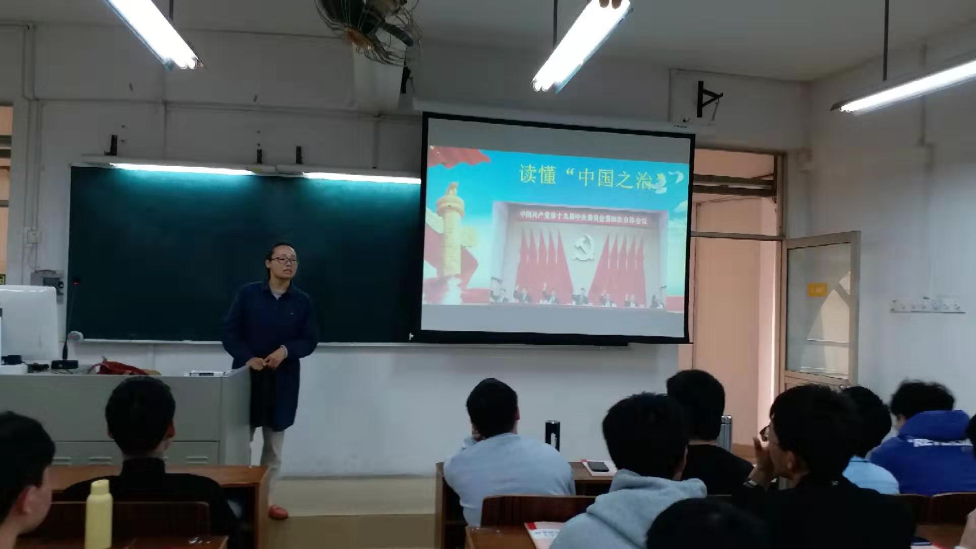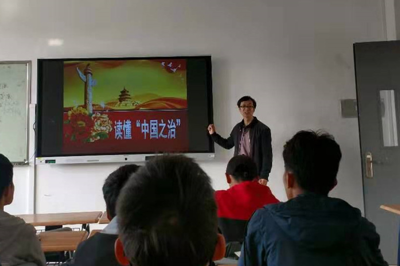 马克思主义学院的老师在接到授课任务后,迅速确定授课提纲和授课内容,进行了集体备课。随后,老师们在两周的时间内利用“形势与政策”课对全校18、19级学生进行了一次全覆盖式的专题讲授。授课过程中老师们主要从“中国之治”的奇迹、“中国之制”的特点和优势、坚定中国特色社会主义制度自信等三个方面,作了“从‘中国之制’看‘中国之治’”为主题的报告。报告中,老师们对中国之治和西方之乱背后的制度原因作了深刻的理论阐释和现实剖析,分别介绍了“什么是‘中国之治’”、“‘中国之治’”为什么好?”、“理解‘中国之治’的深远意义”、“‘中国之治’的制度密钥”、“开辟‘中国之治’的新境界”等几个重要问题,并着重指出党的领导是中国特色社会主义的本质特征,是中国特色社会主义制度的最大优势。同时指出,现代化的国家治理体系对于全面建成小康社会,全面建设社会主义现代化国家,确保党和国家长治久安具有远大意义,让同学们在感受“中国之治”巨大魅力的同时,更加坚定了中国特色社会主义制度自信。